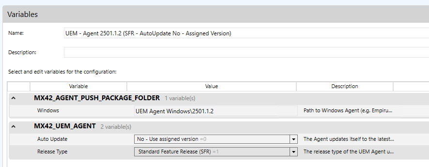 Die Version des Agent steuern wir dann über 2 globale Variablen Definitionen, diese haben ja aber nichts mit dem Template das genutzt wird zu tun:
