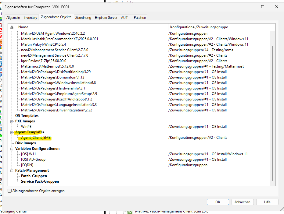 DAs Template ist in Empirum richtig zugeordnet.