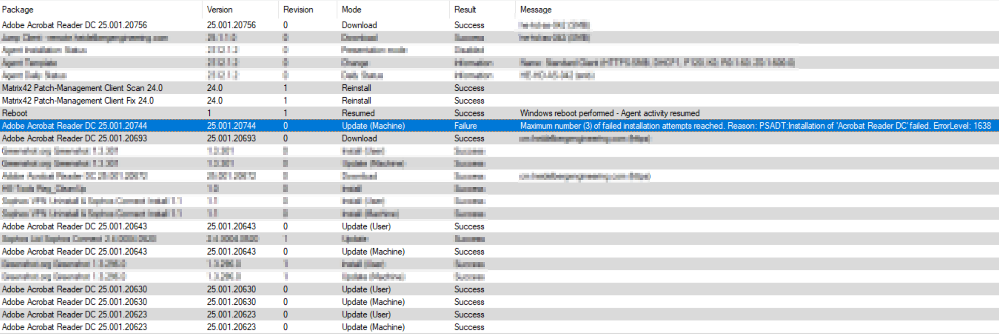 > ErrorLogMsg: Errorlevel:1638 - PSADT:Installation of 'Acrobat Reader DC' failed. ErrorLevel: 1638 Die Publisher-Eigenschaft kann nicht gefunden werden.