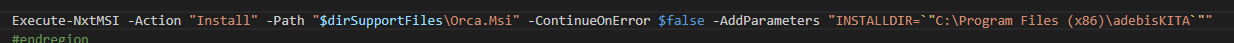 Execute-MSI -Action „Install“ -Path „$dirSupportFiles\adebisKITA7-5-3-3821-Setup-AKDB.msi“ -ContinueOnError $false -AddParameters INSTALLDIR=„C:\Program Files (x86)\adebisKITA“