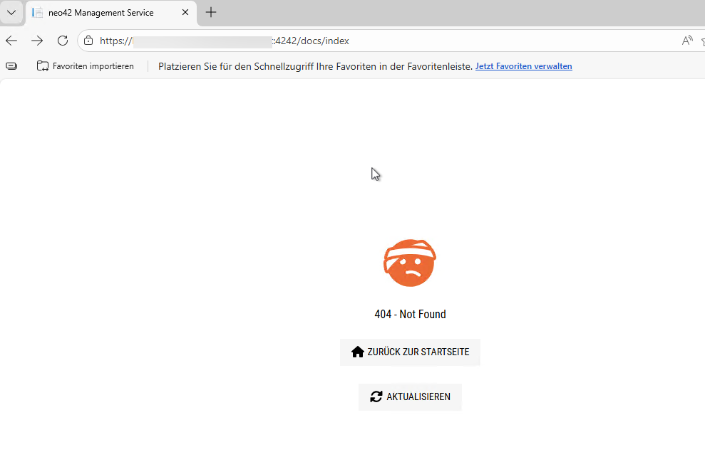 Beim Aurufen über einen Browser bekommen wir ebenfalls ein Fehler: