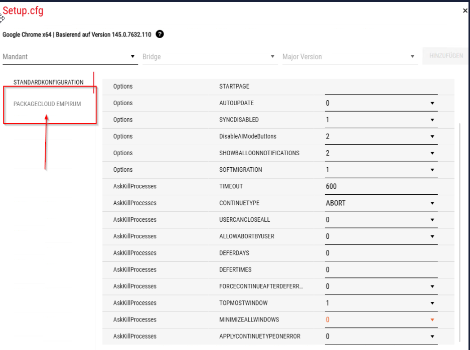 danke für die Rückmeldung. Ja so sollte es aussehen, aber in der lokalen .cfg (auch Empirum) steht der Wert als Standard auf 1.