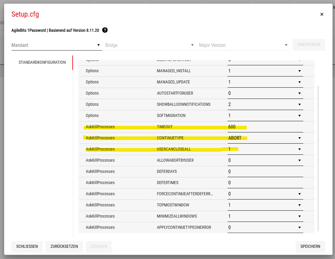 wir verteilen gerade 1Password bei uns über das Depot. Sobald das PopUp für die Aktualisierung kommt, weist es den User auf ein laufendes 1 Password hin und zählt runter. Es gibt keine Möglichkeit für den user das Programm direkt zu beenden (hier wäre ein Knopf gut), der zum Beispiel heißt: Programm beenden und Installation fortfahren.