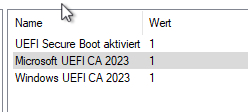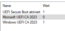 Hat da jemand evtl. noch infos? Reicht es wenn bei Windows UEFI CA 2023 eine 1 steht oder müssen beide auf 1 stehen.