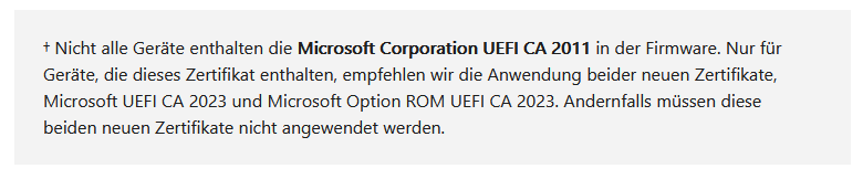 ”Wenn du „nur“ Windows nutzt, reicht Windows UEFI CA 2023 für dich aus; Microsoft UEFI CA 2023 brauchst du nur, wenn du auch Drittsystem‑Bootloader gemeinsam mit Secure Boot nutzen willst.”