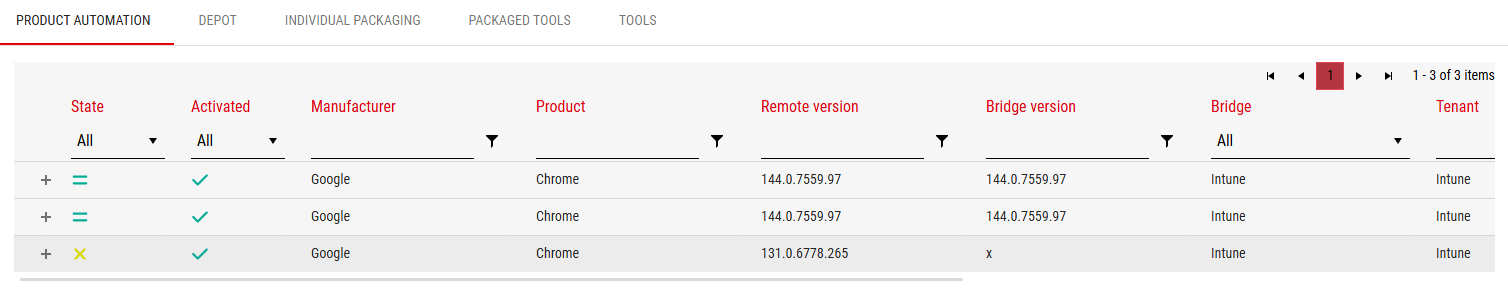 Nach dem Hinzufügen wird unter dem Abschnitt „Produktautomatisierung“ jedoch zweimal die identische (aktuellste) Softwareversion angezeigt, obwohl ich die Produktautomatisierung für eine ältere Version erstellt habe.